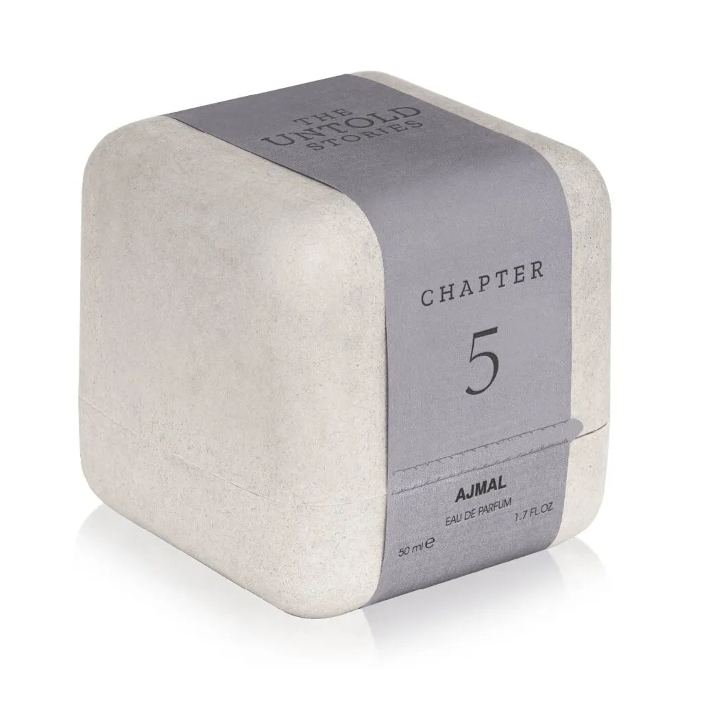 Az Ajmal Chapter 5 egy kivételes uniszex parfüm, amelyet 2025-ben mutattak be az innovatív Chapter kollekció részeként. Ezt az illatot Coralie Spicher parfümőr jegyzi, aki eredeti kézjegyével mélységet és titokzatosságot kölcsönzött a parfümnek. A Chapter 5 elsősorban azoknak szól, akik szokatlan és intellektuális illatélményekre vágynak, borostyános-fás karakterrel, amelyben a meditatív hangulat és a lenyűgöző sötét tónusok dominálnak. Nők és férfiak számára egyaránt megfelelő – ideális választás mindazoknak, akik egy összetéveszthetetlen történettel és időtlen eleganciával rendelkező parfümöt keresnek.