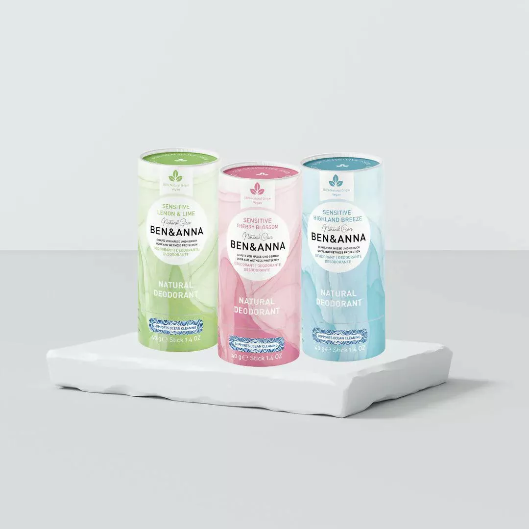 Přírodní tuhý deodorant Ben & Anna z řady Sensitive bez obsahu jedlé sody bude vyhovovat především citlivé pleti. Ve složení dominuje pěsticí kokosový olej, ricinový a hroznový olej, bambucké máslo, které pokožku zklidňují, regenerují a propůjčují jí vláčnost a jemnost.