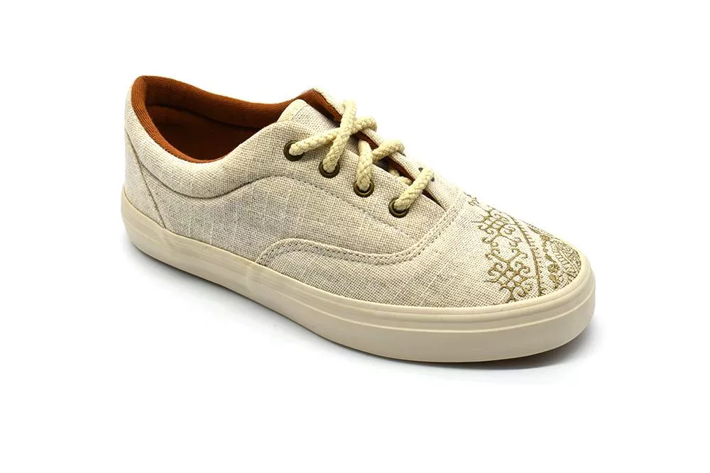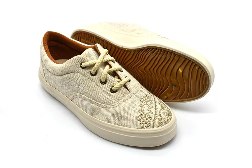 A Perky Light Bordado tornacipő elvarázsol minden természetbarátot és szerelmest Kézzel szőtt, puha bézs színű anyagból készült, hagyományos hímzéssel díszített és pamutfűzővel kiegészített. A tartós PVC talpnak köszönhetően ezek a szépségek számtalan kilométert fognak veled sétálni a városban és a vidéken.