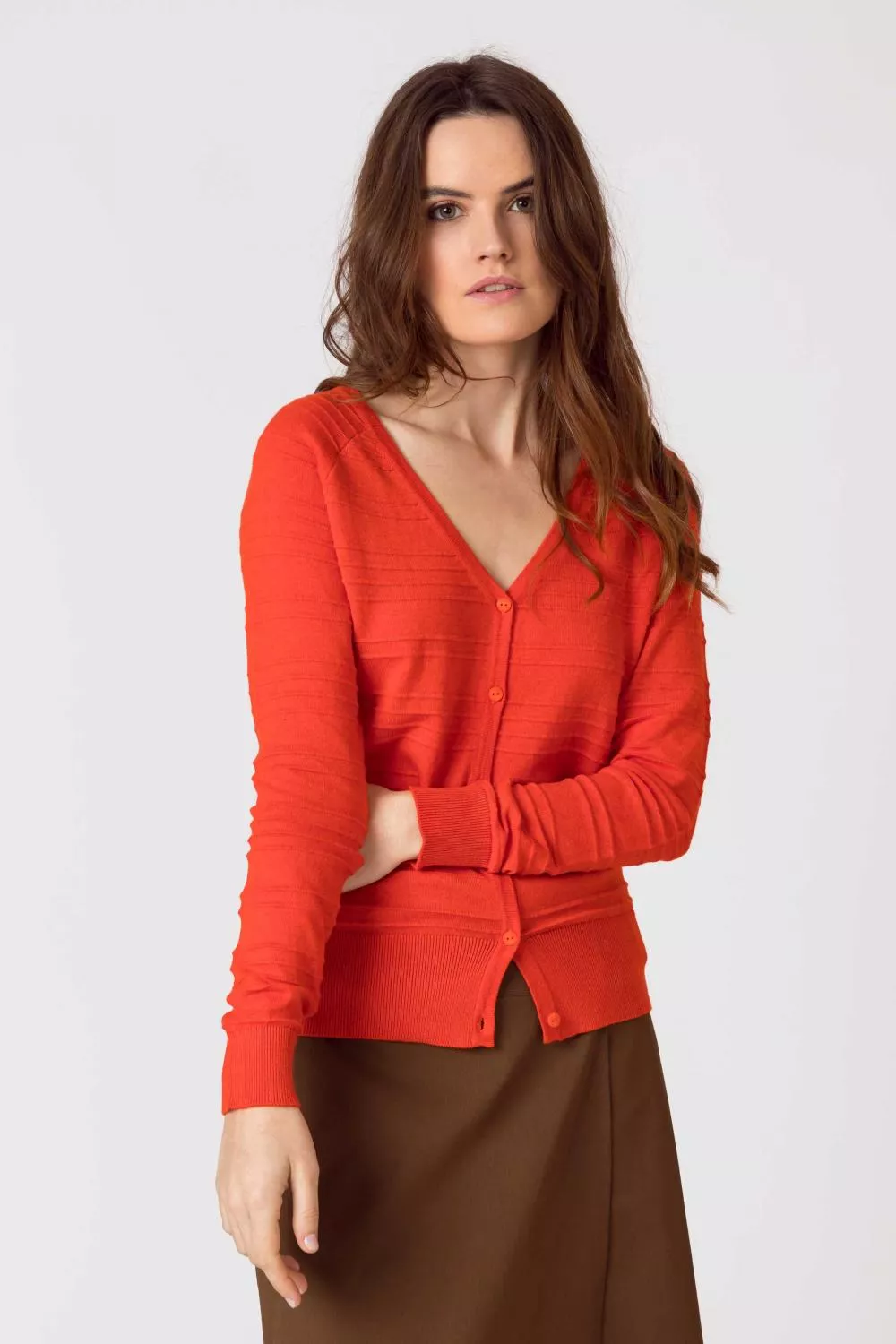 Az SKFK Betti ajtó az Ön ruhatárának kedvelt darabja lesz. Tetszetős eper színe alkalmas a nyári szórakozásra, de a borús őszi napokat is feldobja. A V-nyakkivágásnak és a gombos zárásnak köszönhetően remekül kiegészíti a ruhákat vagy ingeket. Organikus pamutból készült.