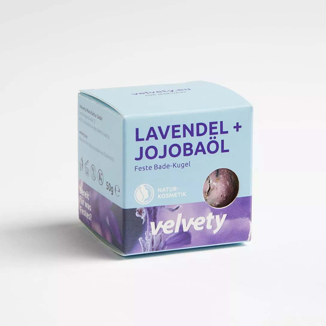 Termékleírás Velvety Fürdőbomba jojobaolajjal - Levendula (50 g)